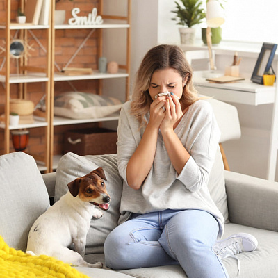 - частицы шерсти и слюны животных, в этом случае аллергический ринит развивается у владельцев собак и кошек, а поскольку контакт с виновниками патологического процесса постоянный, аллергия одолевает человека большую часть времени;
