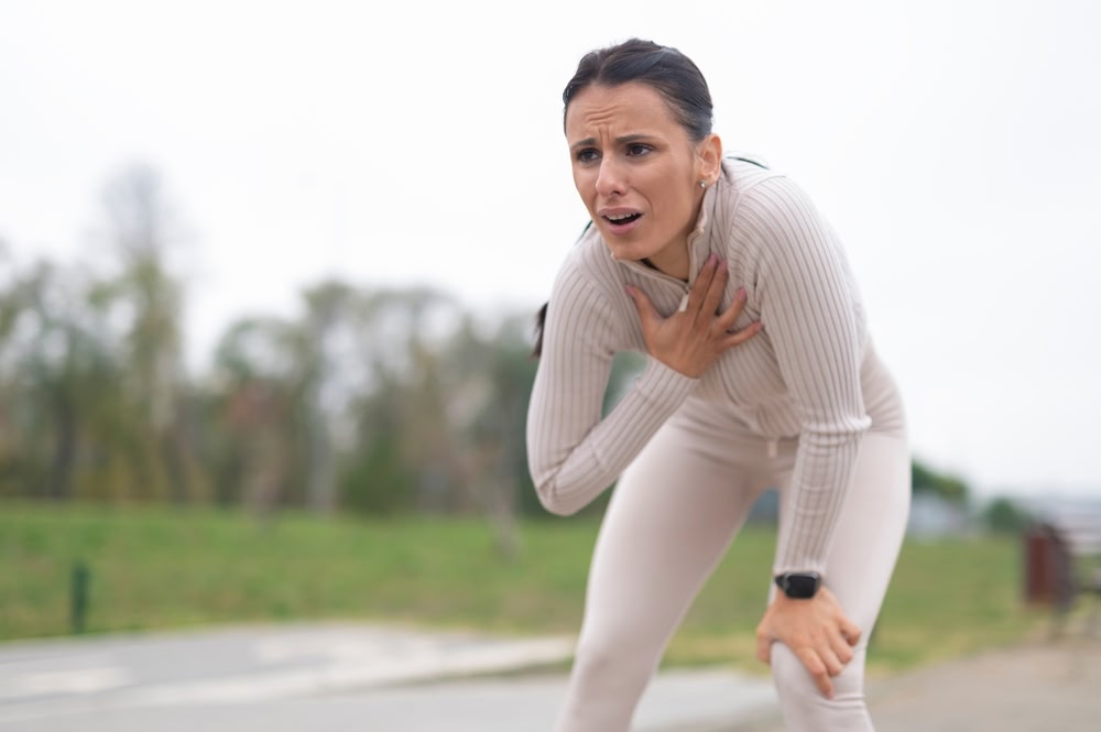 - появляется ощущение нехватки воздуха, кажется, что не получается дышать полной грудью;