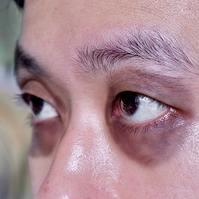 - образованием гематом в области глаз, орбиты (симптом очков).