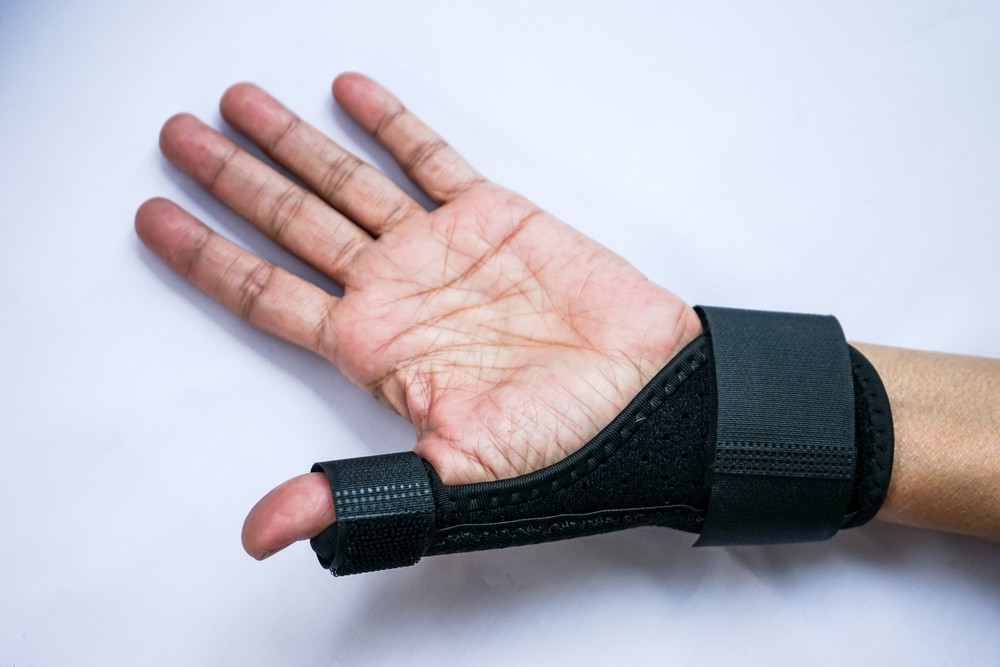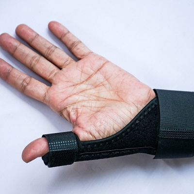 Чтобы ткани быстрее восстановились, объем движений в большом пальце должен быть ограничен. Как это будет происходить, зависит от характера и стадии заболевания. Одним пациентам просто рекомендуют меньше двигать большим пальцам, другим назначают ношение мягкого согревающего бандажа, жесткого или полужесткого ортеза. Если в кости образовалась трещина или она вовсе сломана, то придется носить гипсовую повязку до сращения отломков.