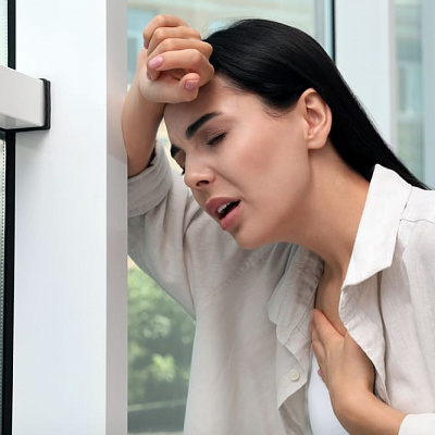 Если причины нарушения психосоматические, нет заболеваний легких и прочих опасных патологий, удушье развивается на фоне стресса, психотравмирующей ситуации. Сопровождается симптомами активации симпатической нервной системы: скачками давления, потливостью, сердцебиением, нарушениями ритма. Это не опасно. Нередко во время острого приступа развивается паническая атака с сильнейшим страхом смерти от осложнений. Также есть риск обмороков. При потере сознания нужно смочить ватку, пропитать ее нашатырным спиртом и поднести к носу пострадавшего. Можно побрызгать лицо водой, но осторожно. Чтобы она не попала в дыхательные пути. Важно обеспечить приток свежего воздуха.